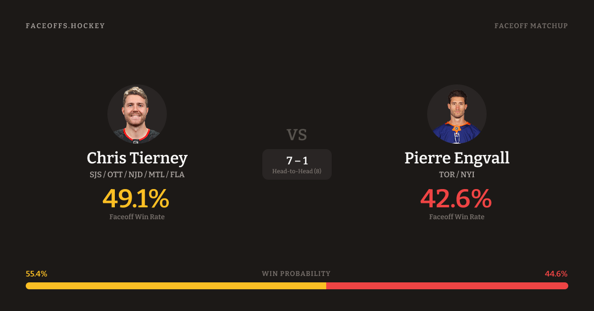 Chris Tierney vs Pierre Engvall — Faceoff Head-to-Head