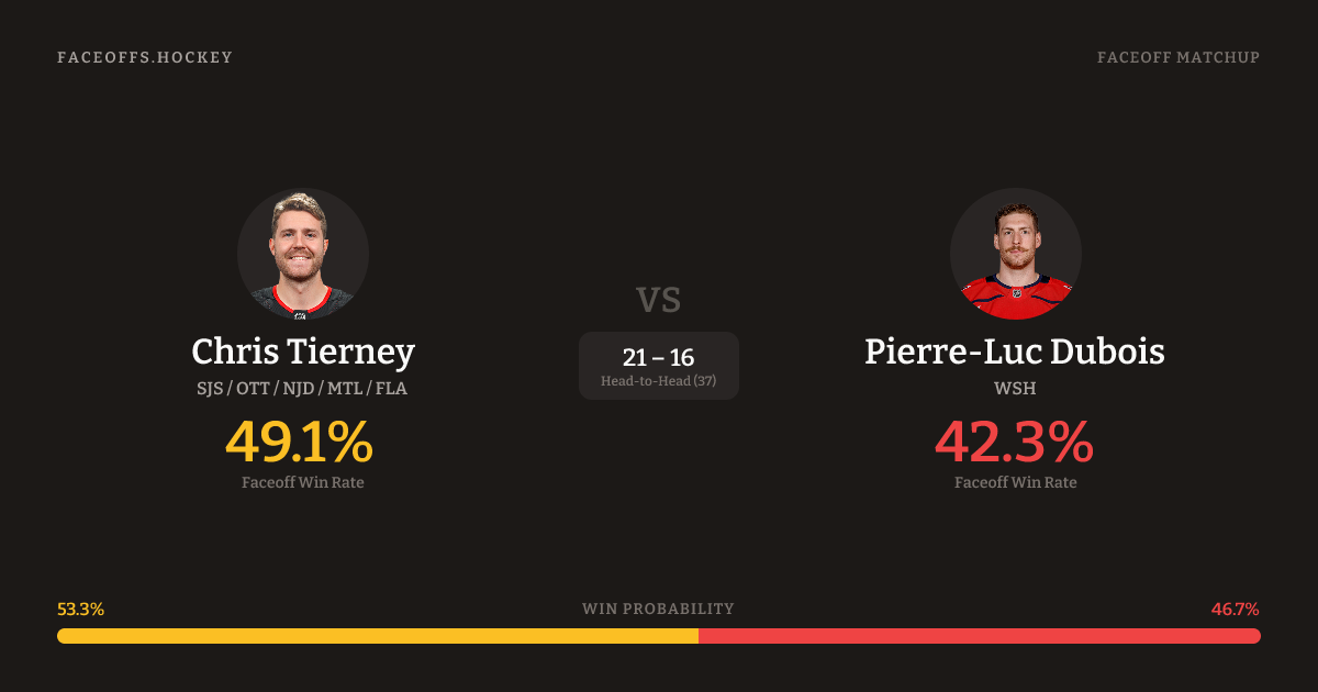 Chris Tierney vs Pierre-Luc Dubois — Faceoff Head-to-Head