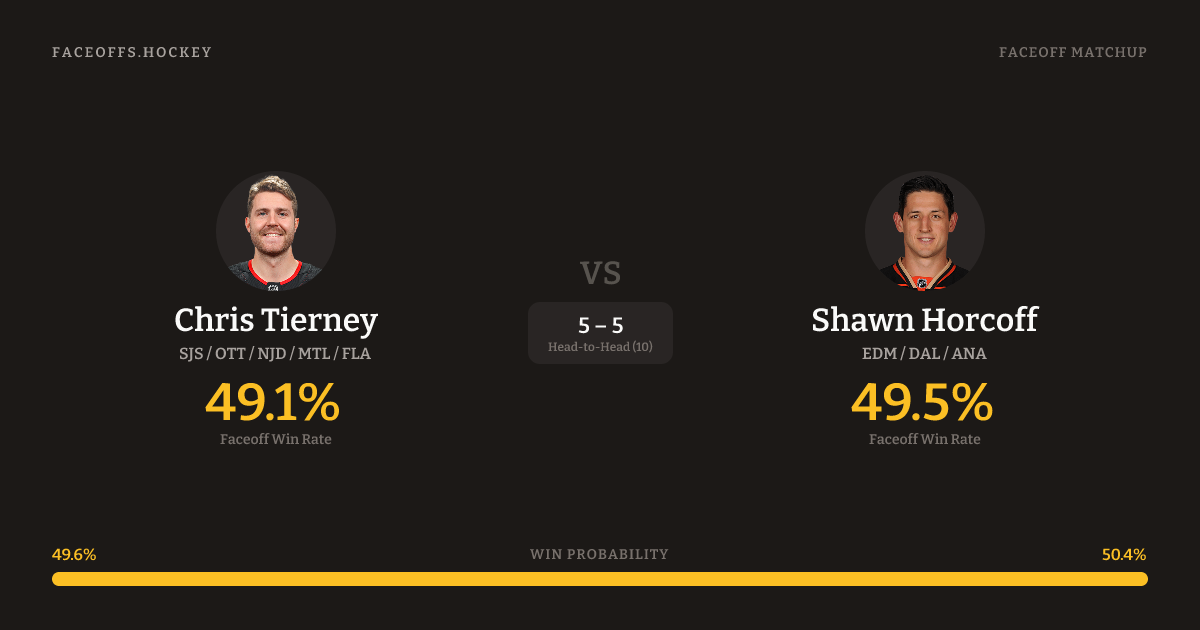 Chris Tierney vs Shawn Horcoff — Faceoff Head-to-Head