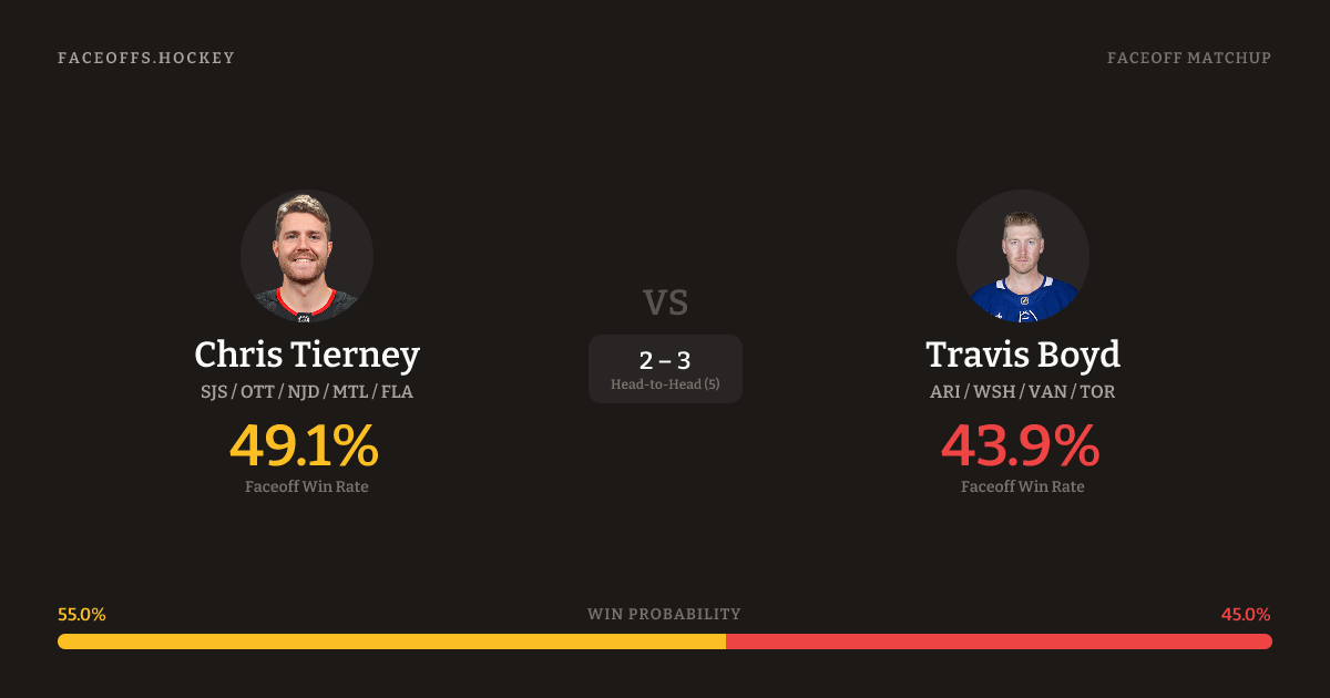 Chris Tierney vs Travis Boyd — Faceoff Head-to-Head