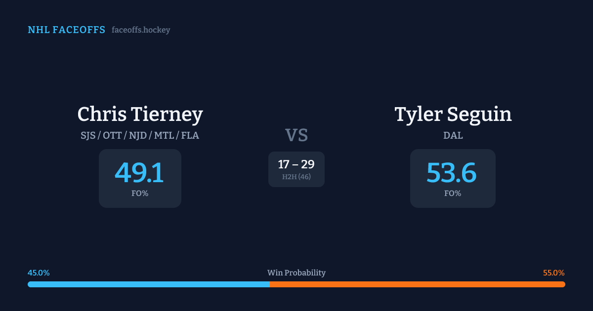 Chris Tierney vs Tyler Seguin — Faceoff Head-to-Head