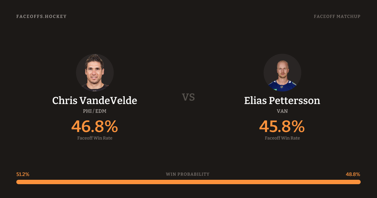 Chris VandeVelde vs Elias Pettersson — Faceoff Head-to-Head