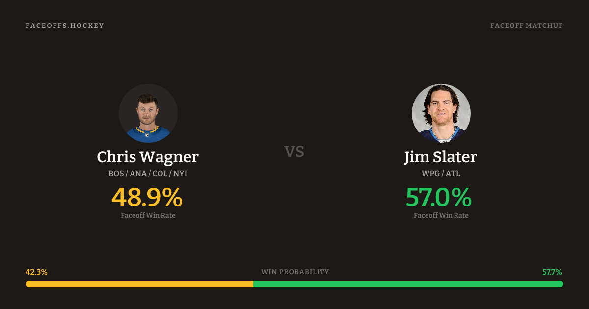 Chris Wagner vs Jim Slater — Faceoff Head-to-Head