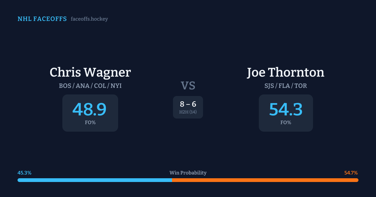 Chris Wagner vs Joe Thornton — Faceoff Head-to-Head