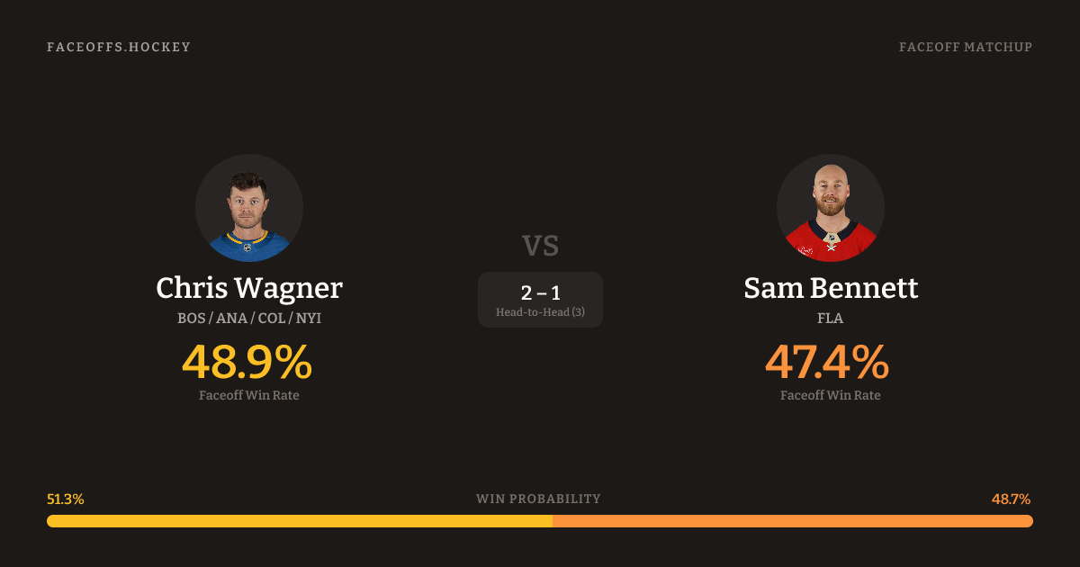Chris Wagner vs Sam Bennett — Faceoff Head-to-Head