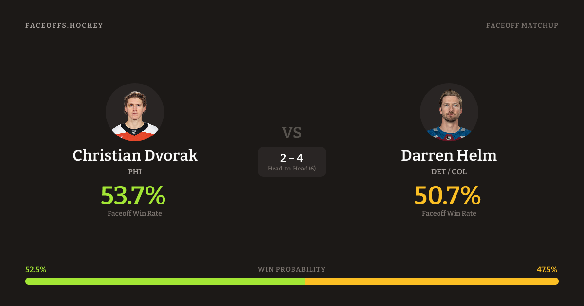 Christian Dvorak vs Darren Helm — Faceoff Head-to-Head