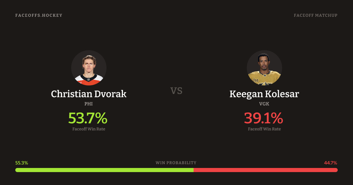 Christian Dvorak vs Keegan Kolesar — Faceoff Head-to-Head