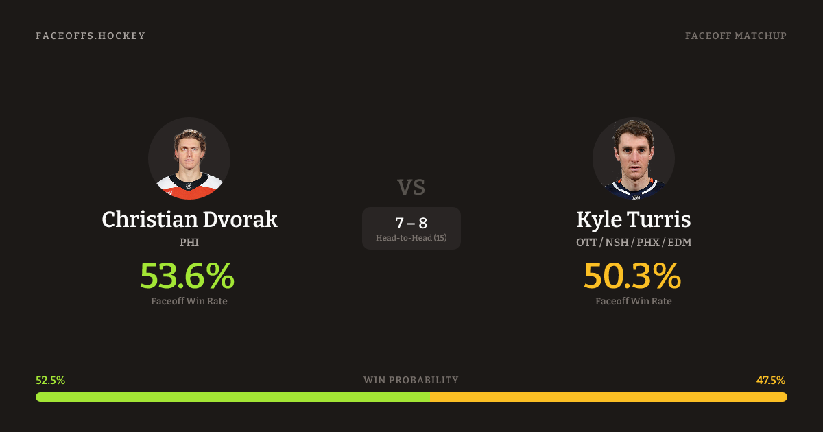 Christian Dvorak vs Kyle Turris — Faceoff Head-to-Head
