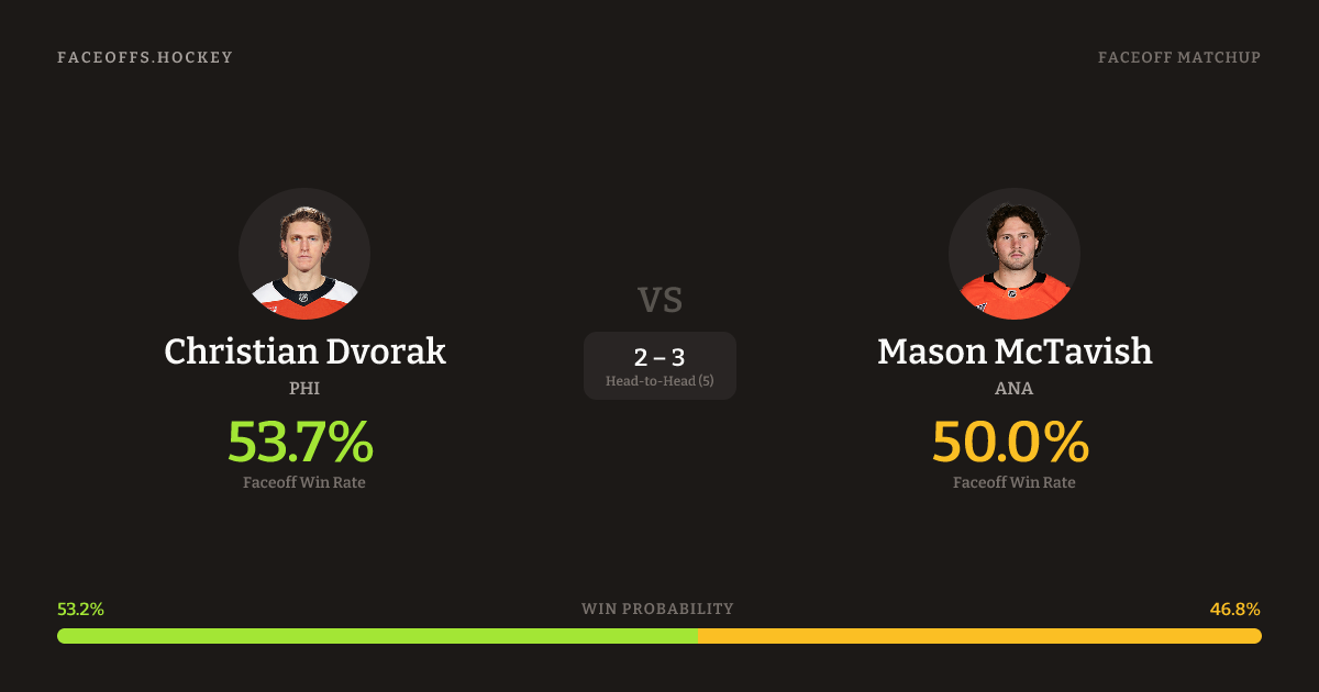 Christian Dvorak vs Mason McTavish — Faceoff Head-to-Head