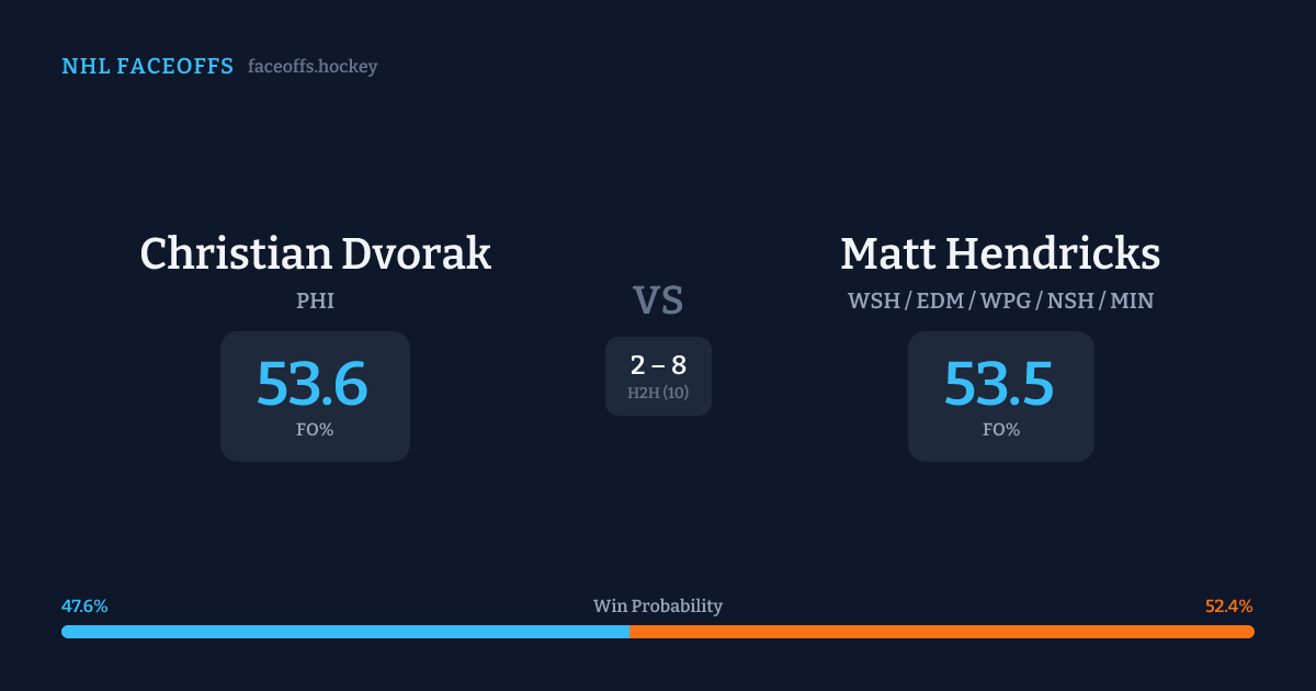 Christian Dvorak vs Matt Hendricks — Faceoff Head-to-Head