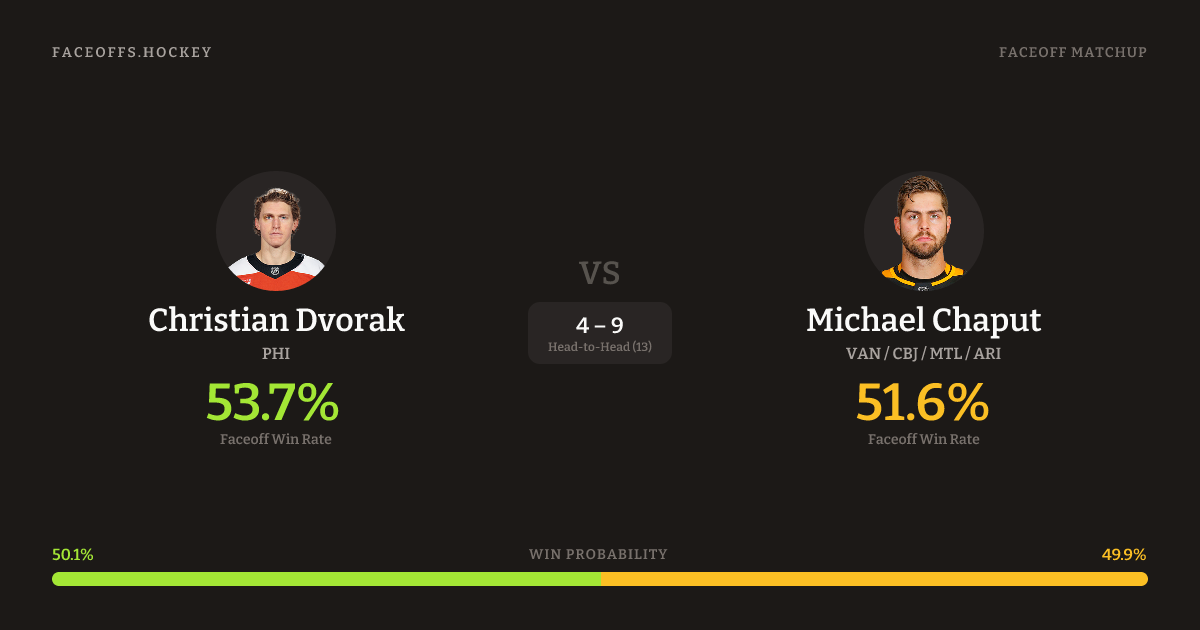 Christian Dvorak vs Michael Chaput — Faceoff Head-to-Head