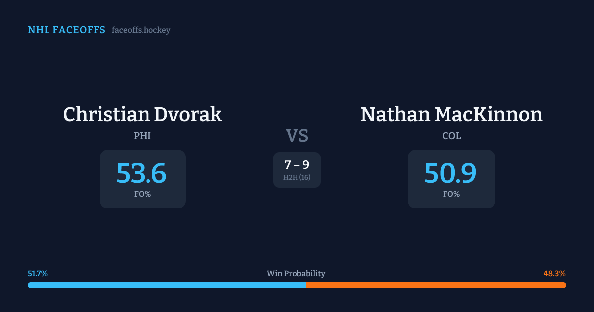 Christian Dvorak vs Nathan MacKinnon — Faceoff Head-to-Head