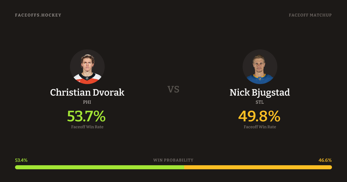 Christian Dvorak vs Nick Bjugstad — Faceoff Head-to-Head