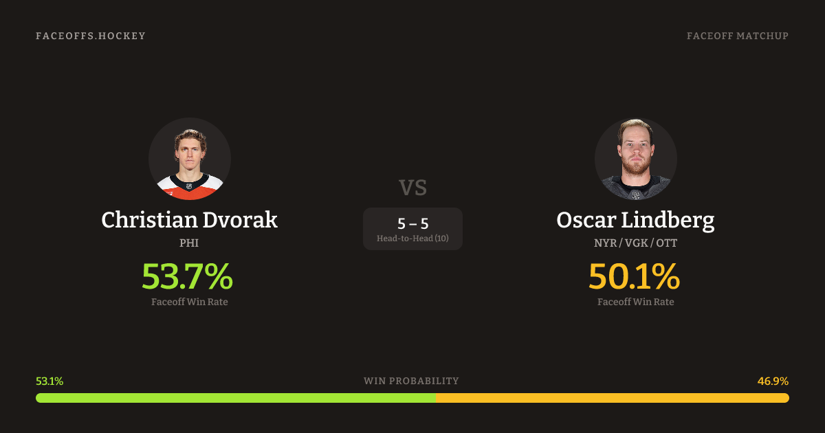 Christian Dvorak vs Oscar Lindberg — Faceoff Head-to-Head