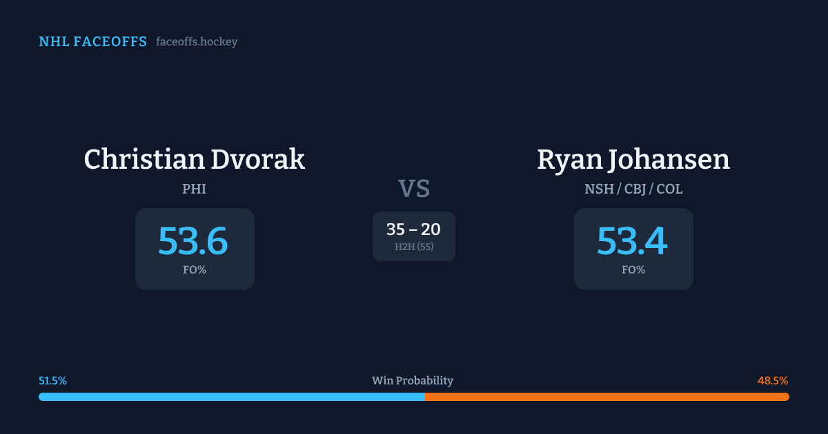 Christian Dvorak vs Ryan Johansen — Faceoff Head-to-Head