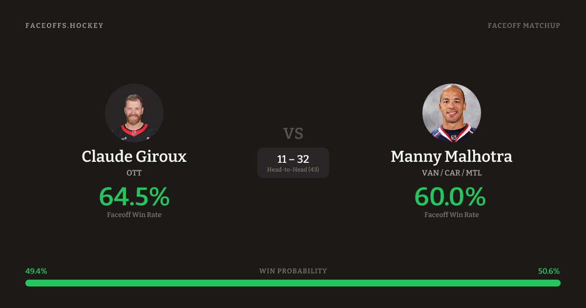 Claude Giroux vs Manny Malhotra — Faceoff Head-to-Head
