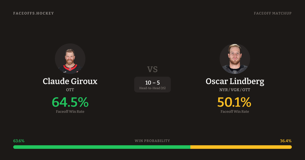 Claude Giroux vs Oscar Lindberg — Faceoff Head-to-Head