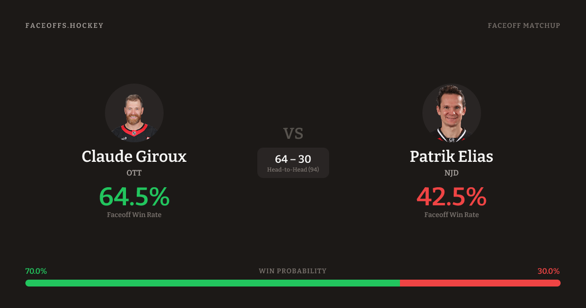Claude Giroux vs Patrik Elias — Faceoff Head-to-Head