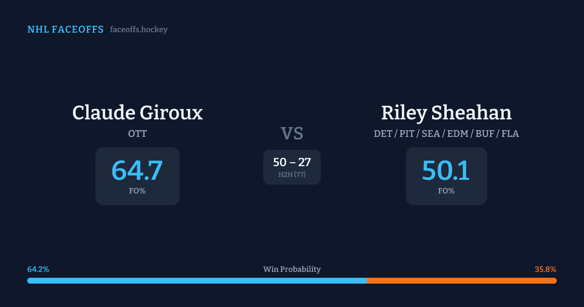 Claude Giroux vs Riley Sheahan — Faceoff Head-to-Head