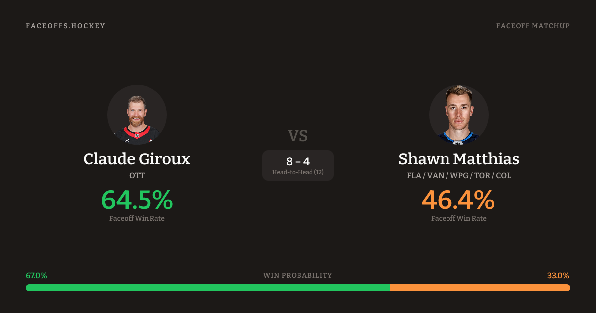 Claude Giroux vs Shawn Matthias — Faceoff Head-to-Head