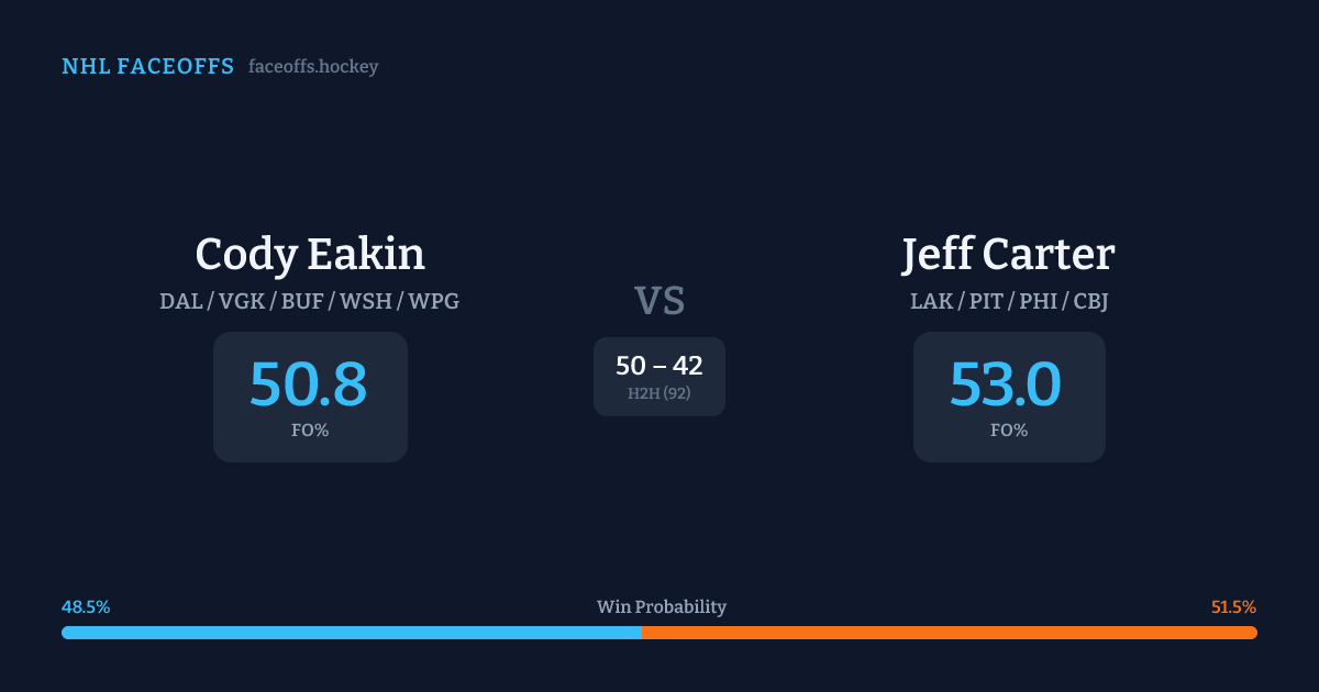 Cody Eakin vs Jeff Carter — Faceoff Head-to-Head