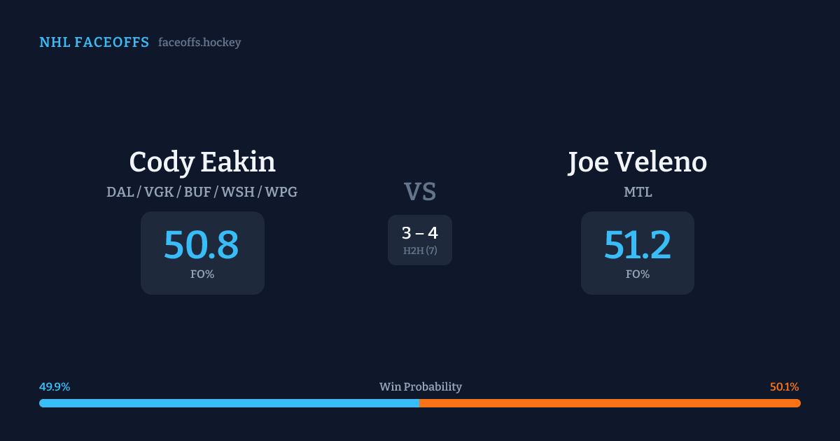 Cody Eakin vs Joe Veleno — Faceoff Head-to-Head