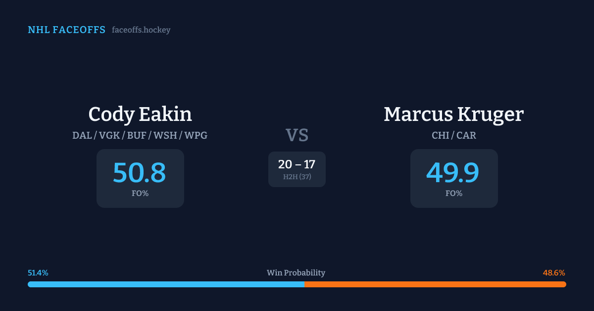 Cody Eakin vs Marcus Kruger — Faceoff Head-to-Head