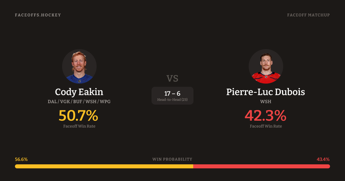 Cody Eakin vs Pierre-Luc Dubois — Faceoff Head-to-Head
