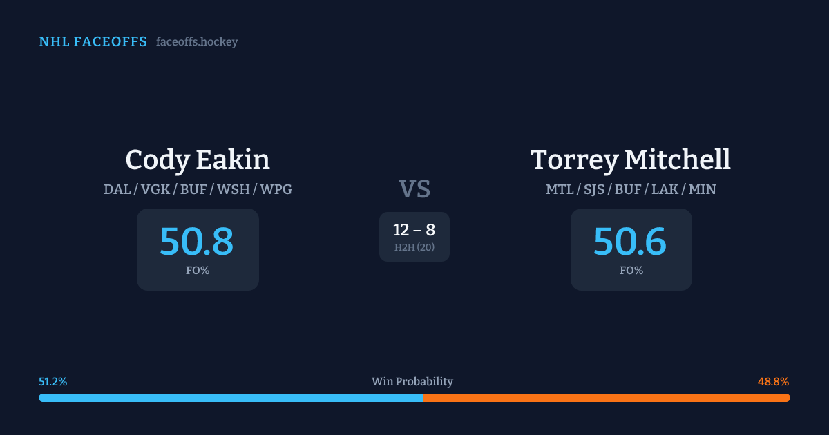 Cody Eakin vs Torrey Mitchell — Faceoff Head-to-Head