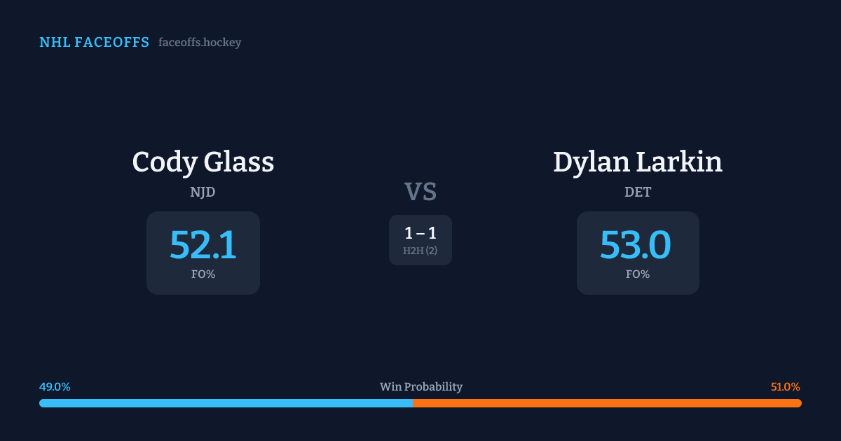 Cody Glass vs Dylan Larkin — Faceoff Head-to-Head