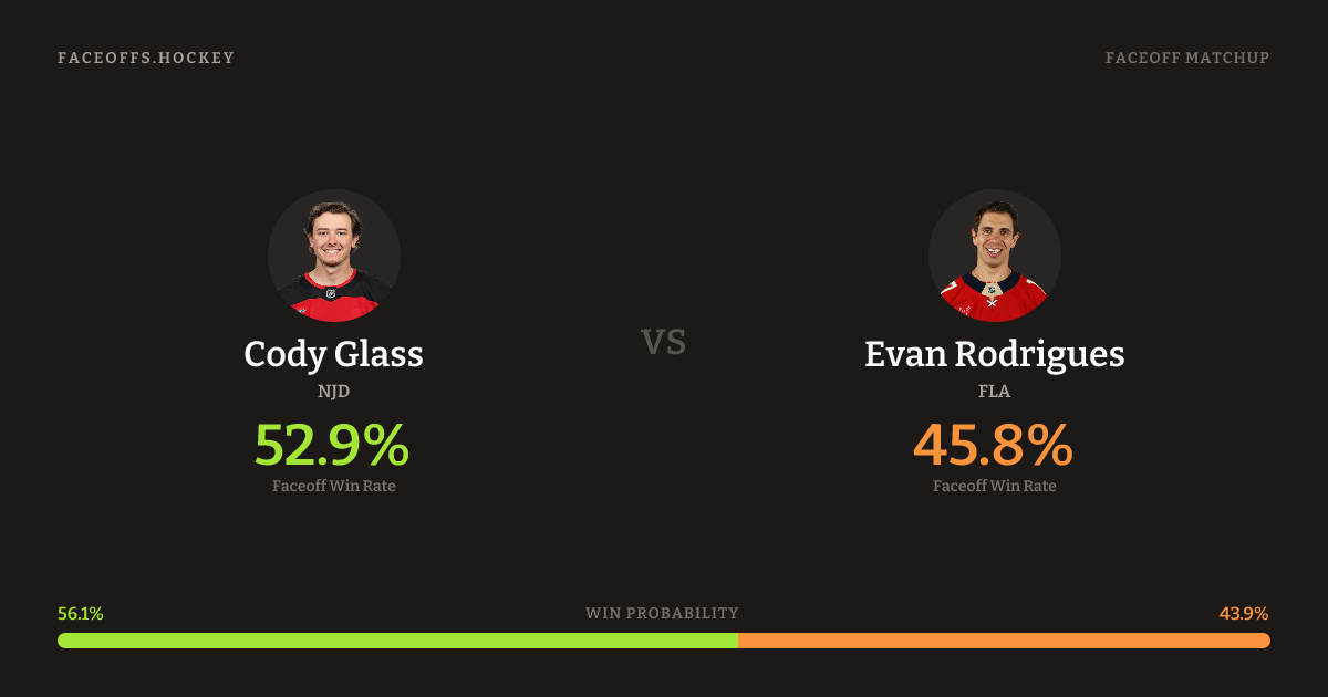Cody Glass vs Evan Rodrigues — Faceoff Head-to-Head