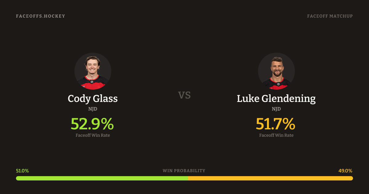 Cody Glass vs Luke Glendening — Faceoff Head-to-Head
