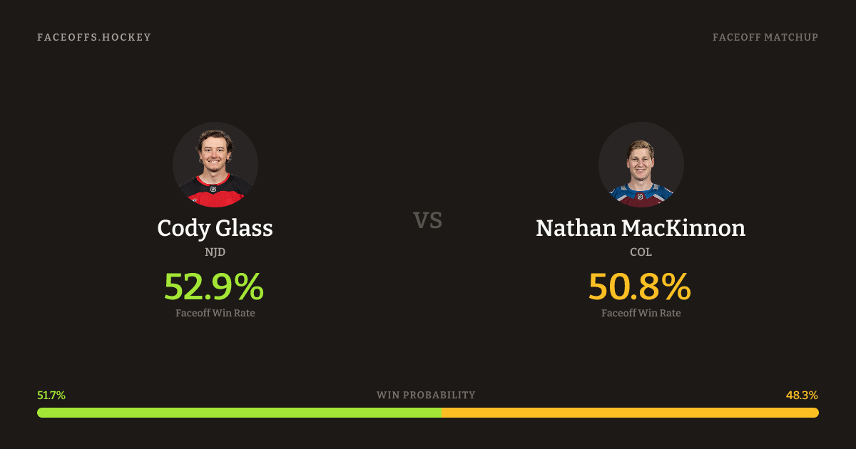Cody Glass vs Nathan MacKinnon — Faceoff Head-to-Head