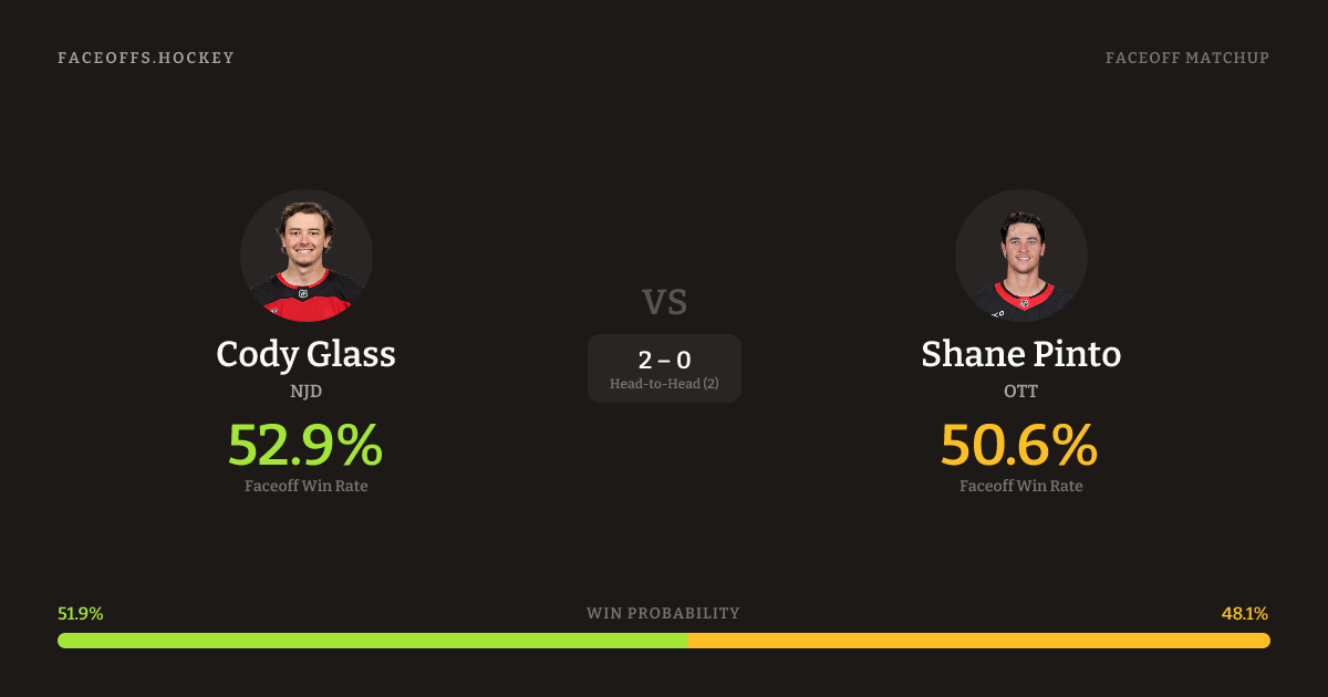 Cody Glass vs Shane Pinto — Faceoff Head-to-Head