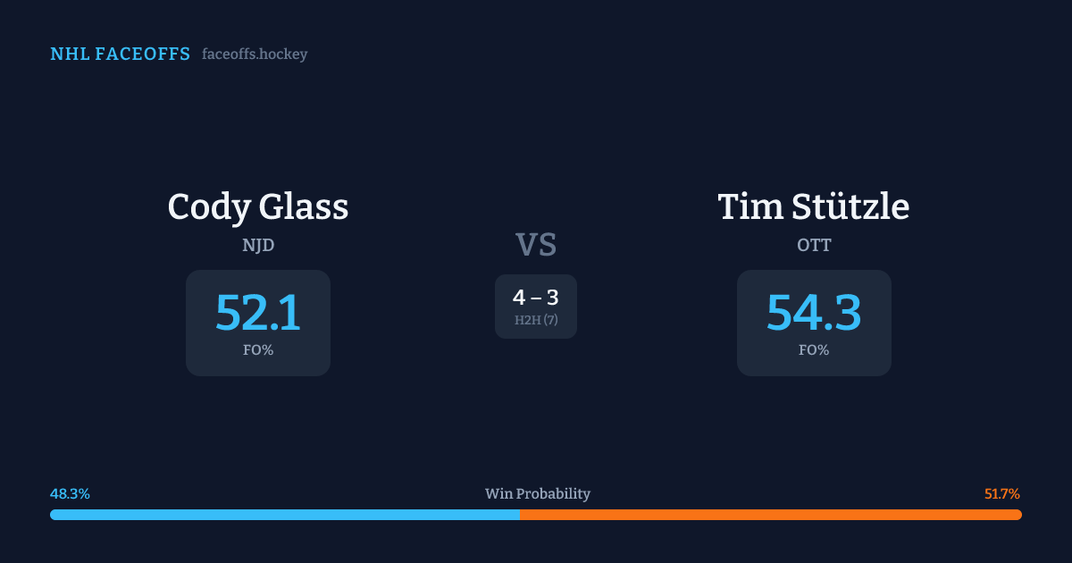 Cody Glass vs Tim Stützle — Faceoff Head-to-Head