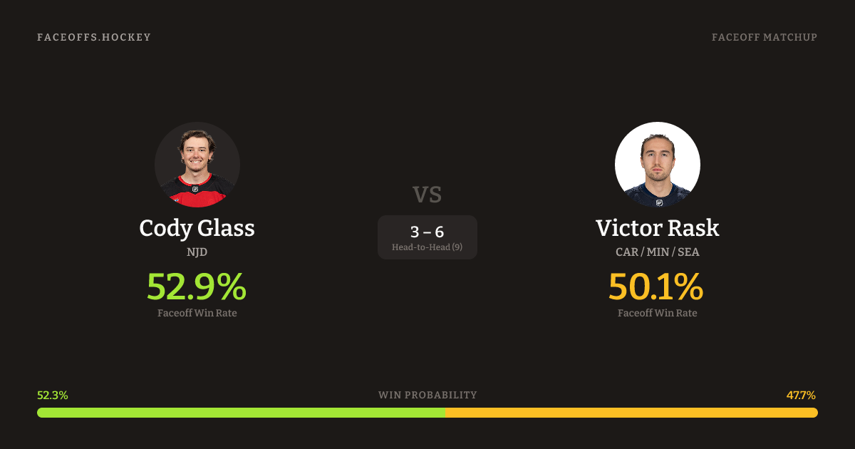 Cody Glass vs Victor Rask — Faceoff Head-to-Head