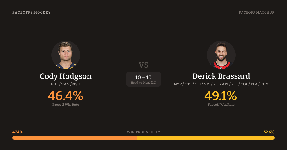 Cody Hodgson vs Derick Brassard — Faceoff Head-to-Head