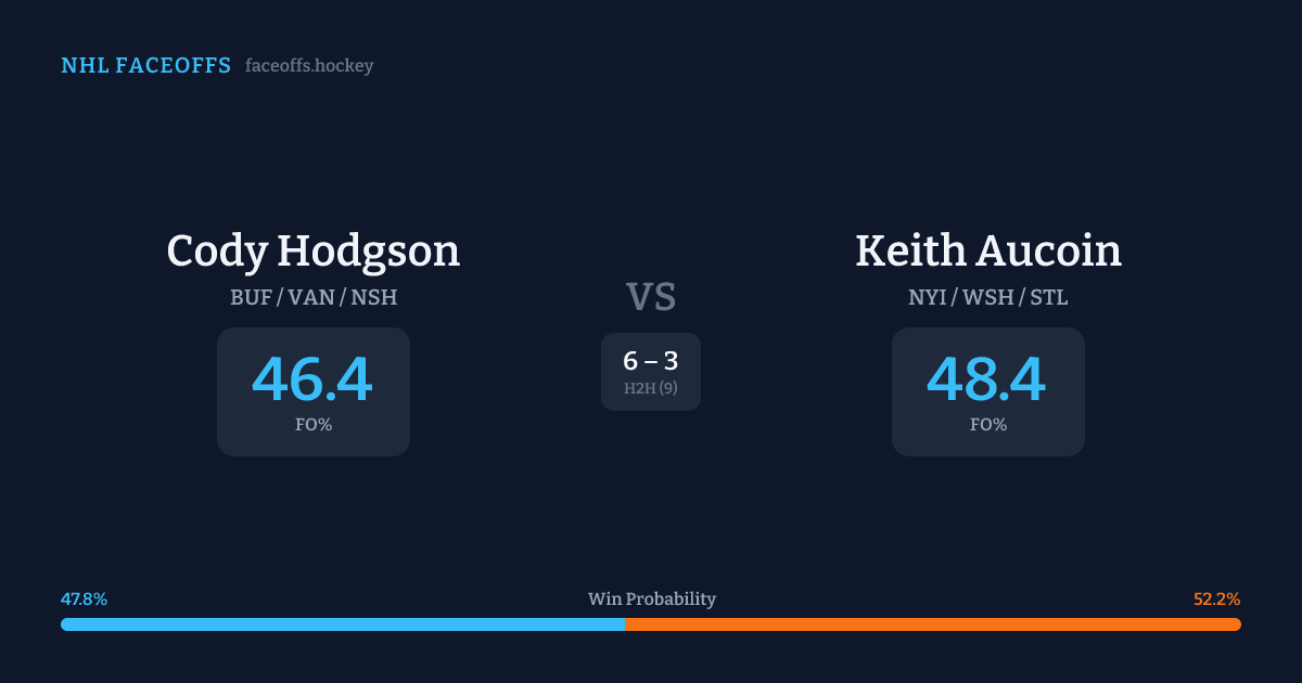 Cody Hodgson vs Keith Aucoin — Faceoff Head-to-Head