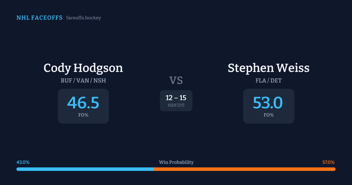 Cody Hodgson vs Stephen Weiss — Faceoff Head-to-Head