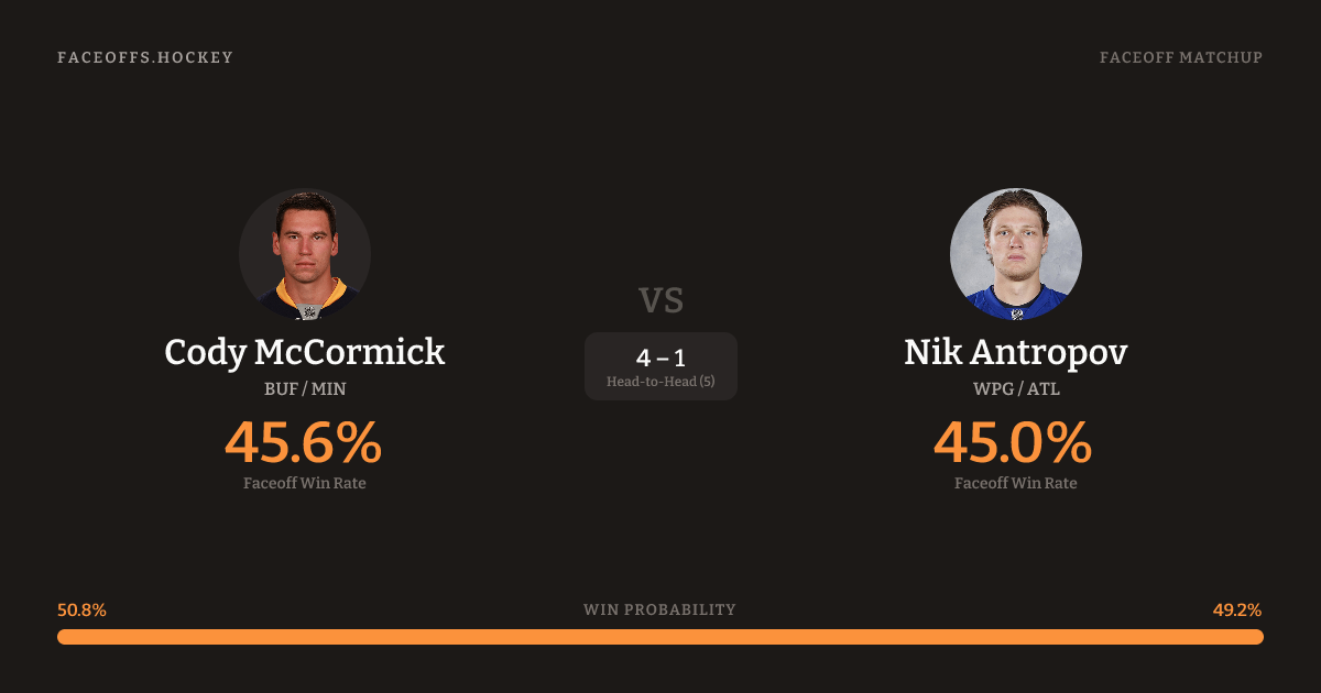 Cody McCormick vs Nik Antropov — Faceoff Head-to-Head