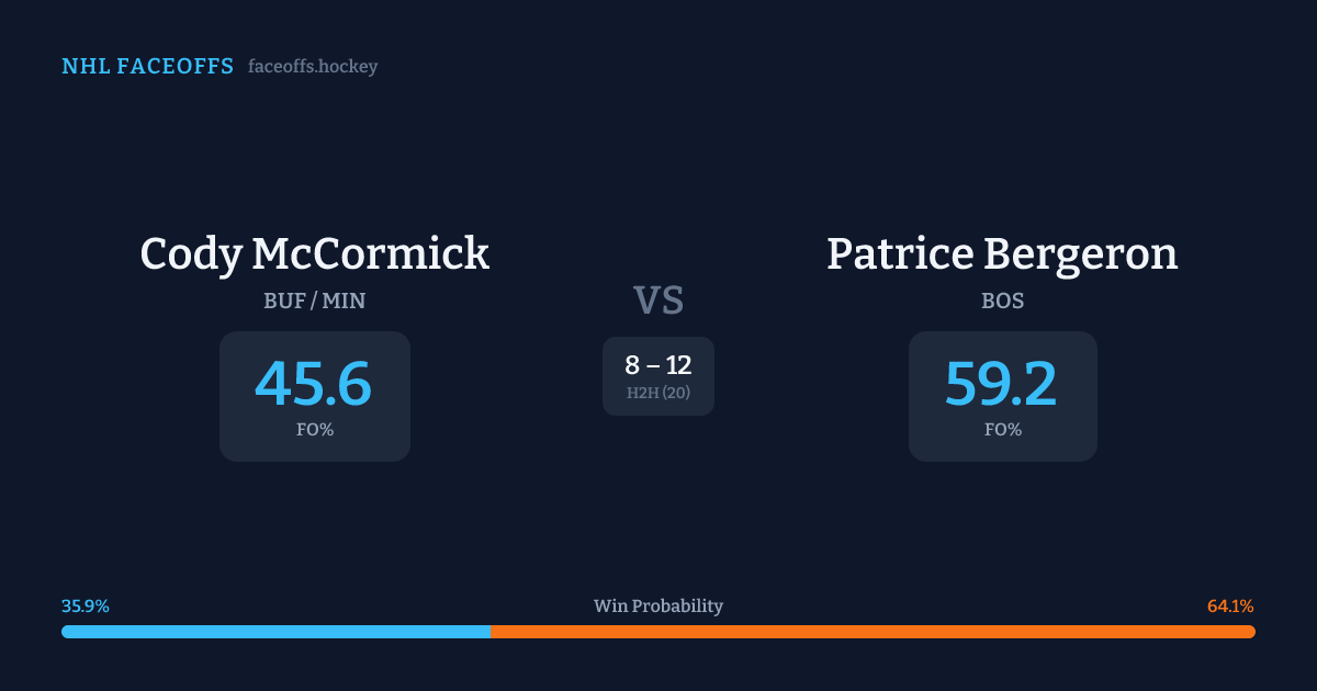 Cody McCormick vs Patrice Bergeron — Faceoff Head-to-Head