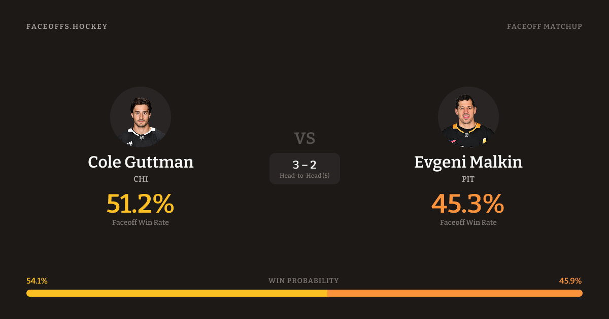 Cole Guttman vs Evgeni Malkin — Faceoff Head-to-Head