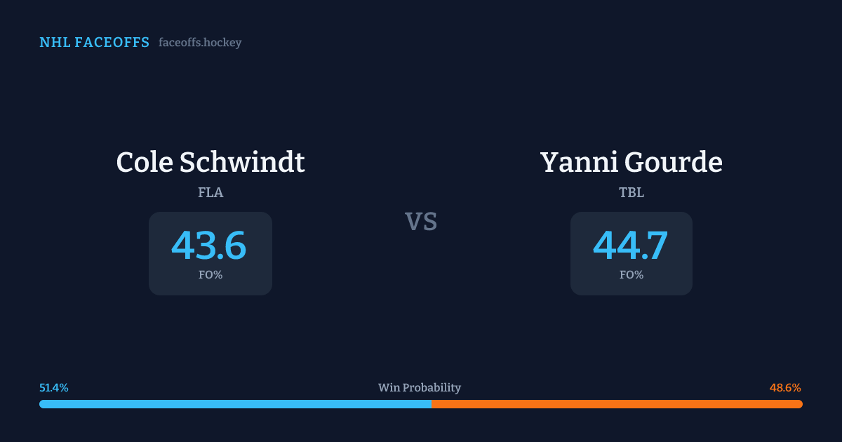 Cole Schwindt vs Yanni Gourde — Faceoff Head-to-Head