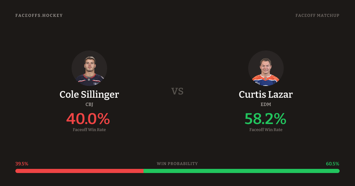 Cole Sillinger vs Curtis Lazar — Faceoff Head-to-Head