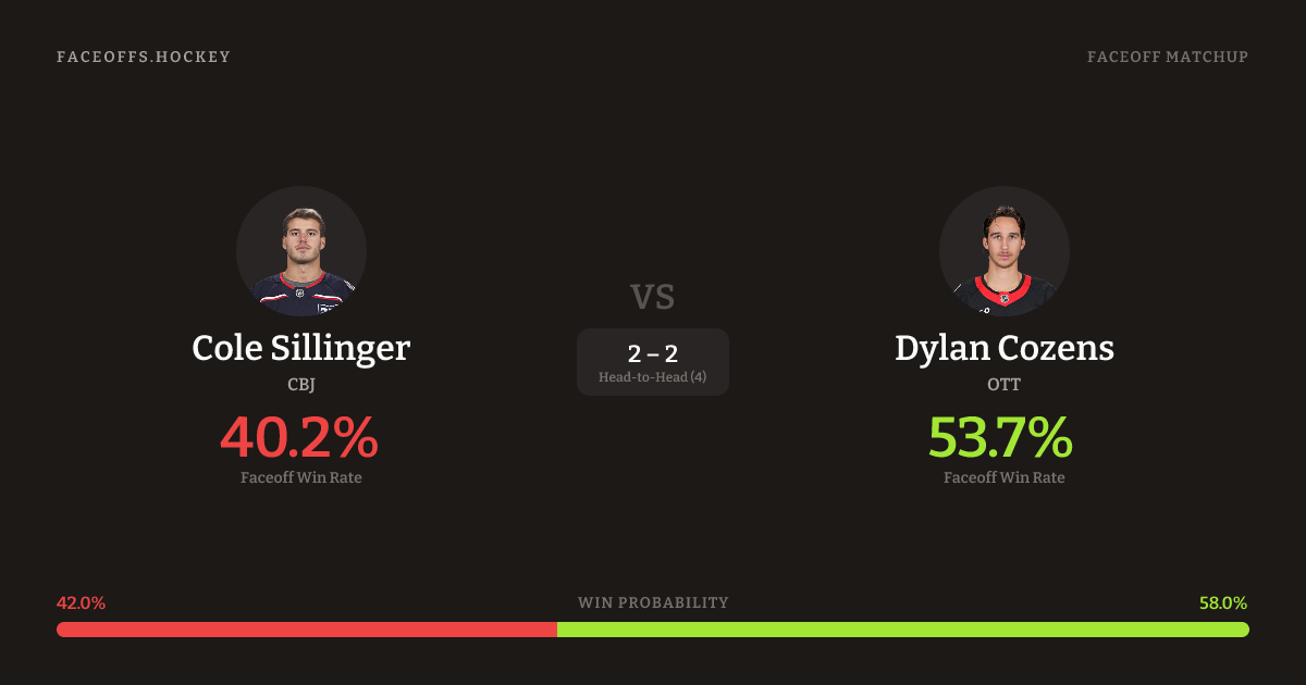 Cole Sillinger vs Dylan Cozens — Faceoff Head-to-Head