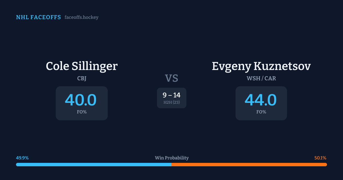 Cole Sillinger vs Evgeny Kuznetsov — Faceoff Head-to-Head