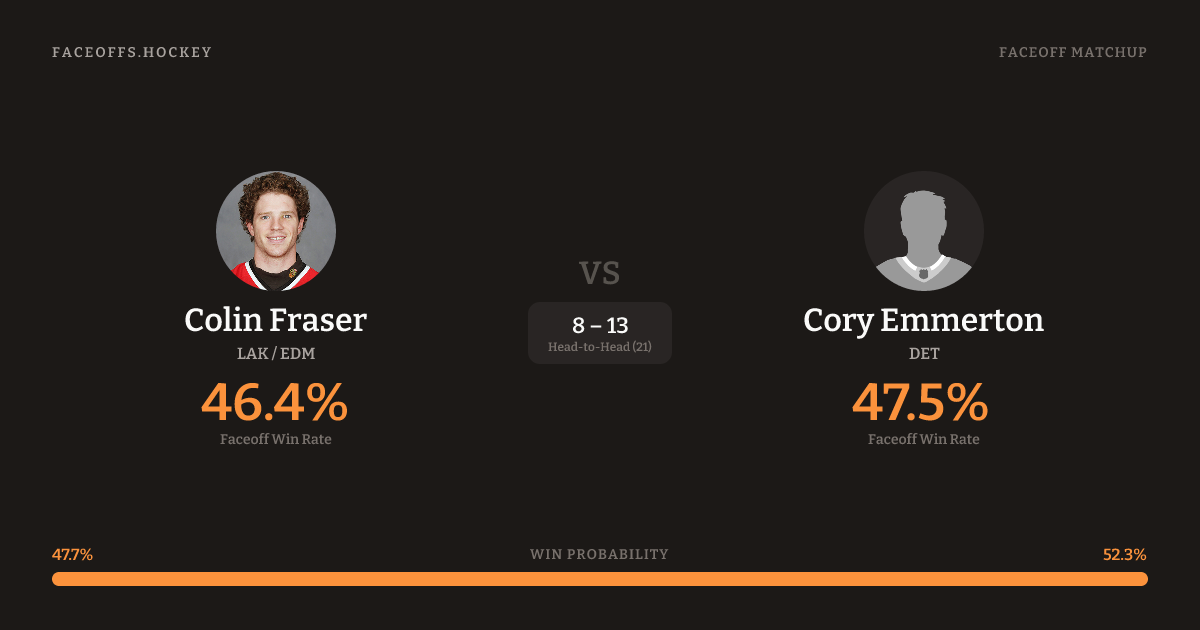 Colin Fraser vs Cory Emmerton — Faceoff Head-to-Head