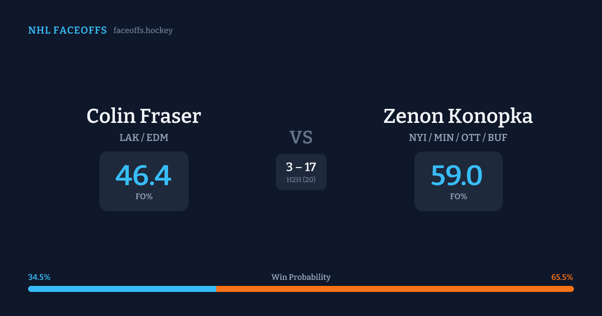 Colin Fraser vs Zenon Konopka — Faceoff Head-to-Head