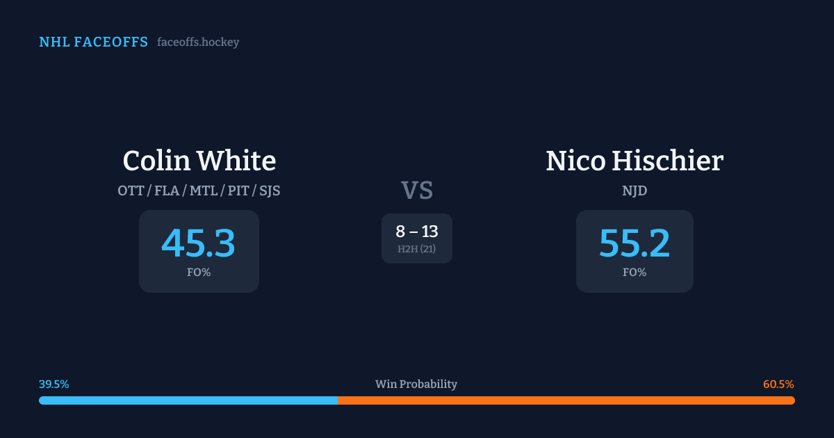 Colin White vs Nico Hischier — Faceoff Head-to-Head
