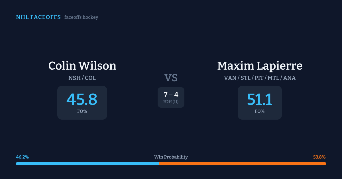 Colin Wilson vs Maxim Lapierre — Faceoff Head-to-Head
